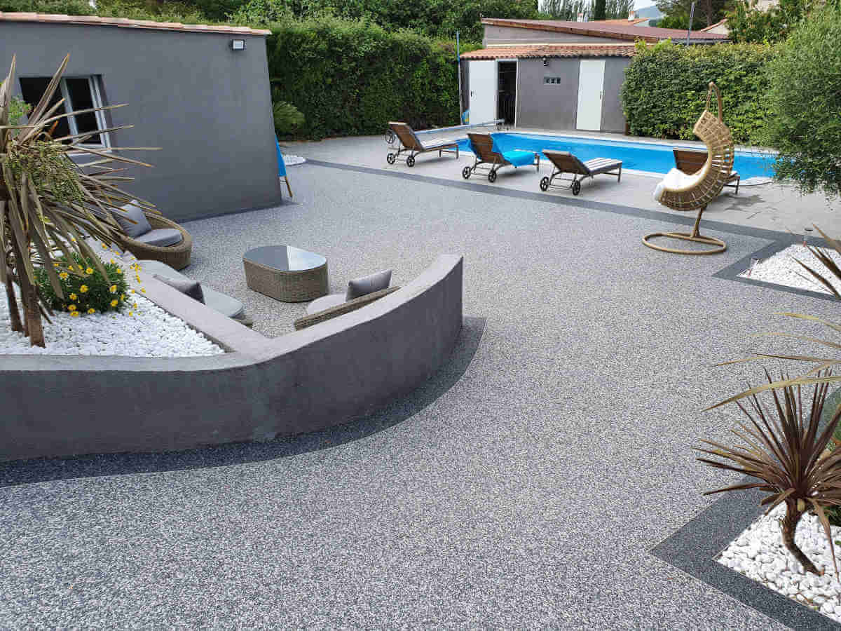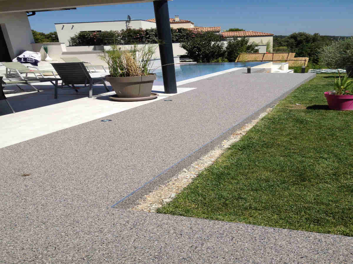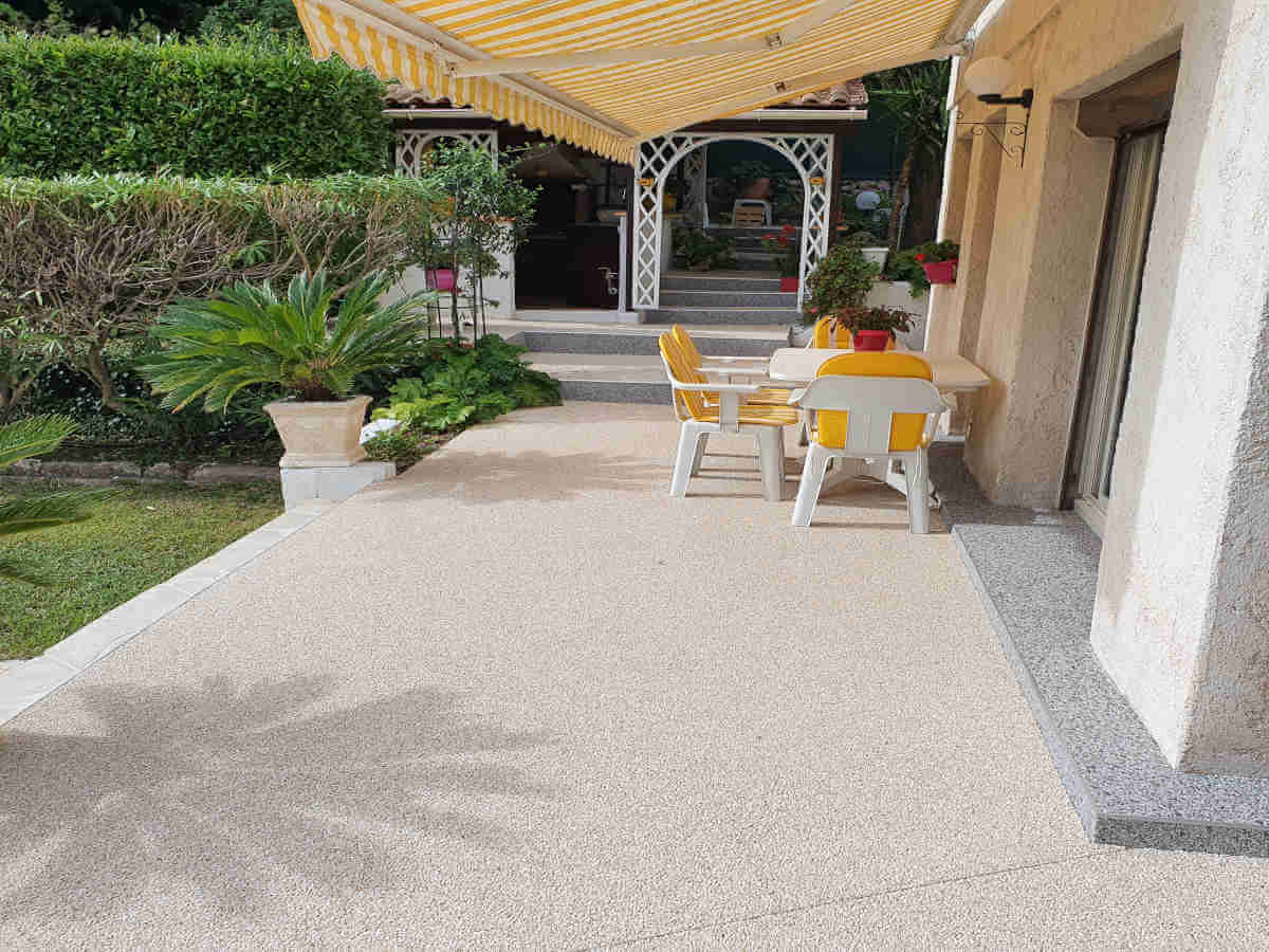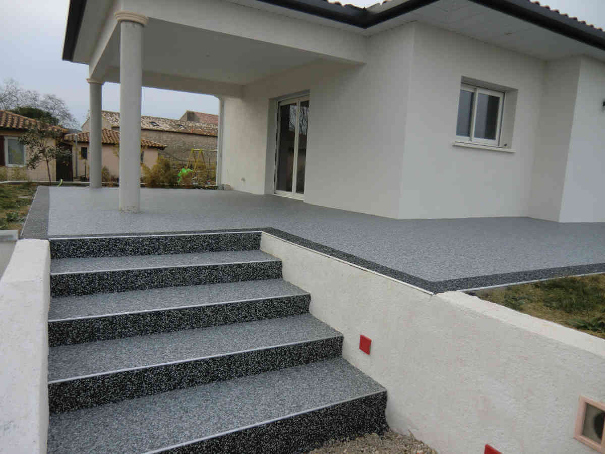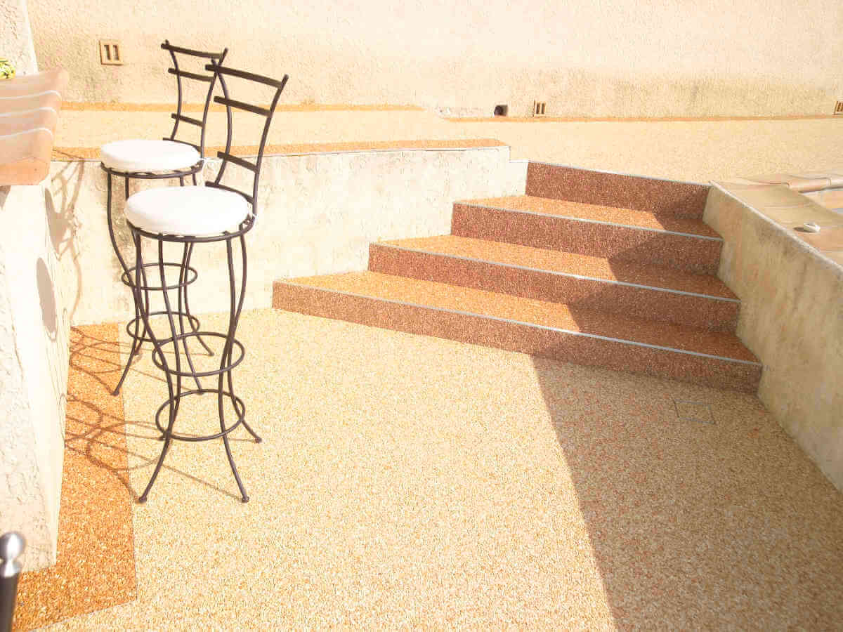 Sols en résine, moquette de pierre pour terrasses extérieures