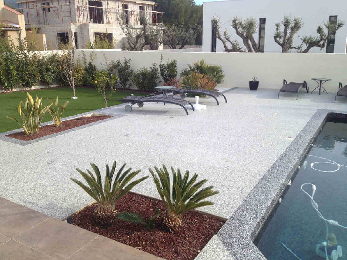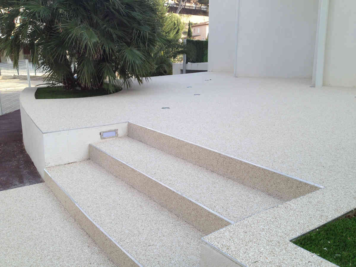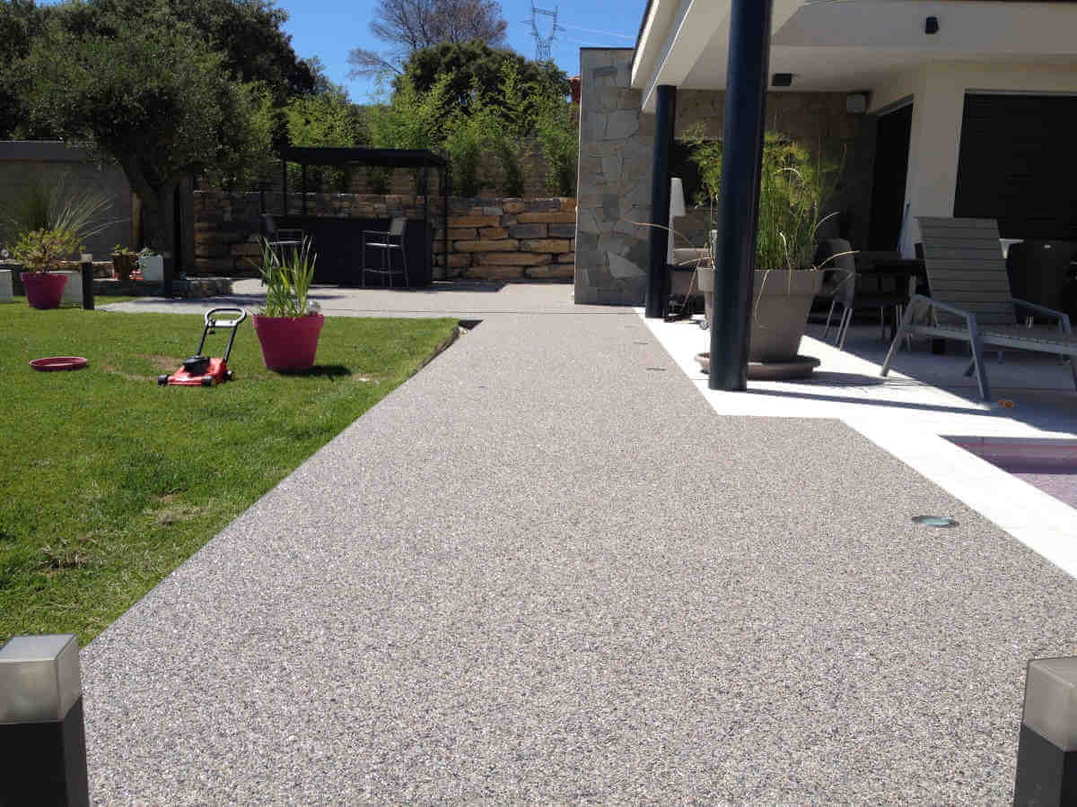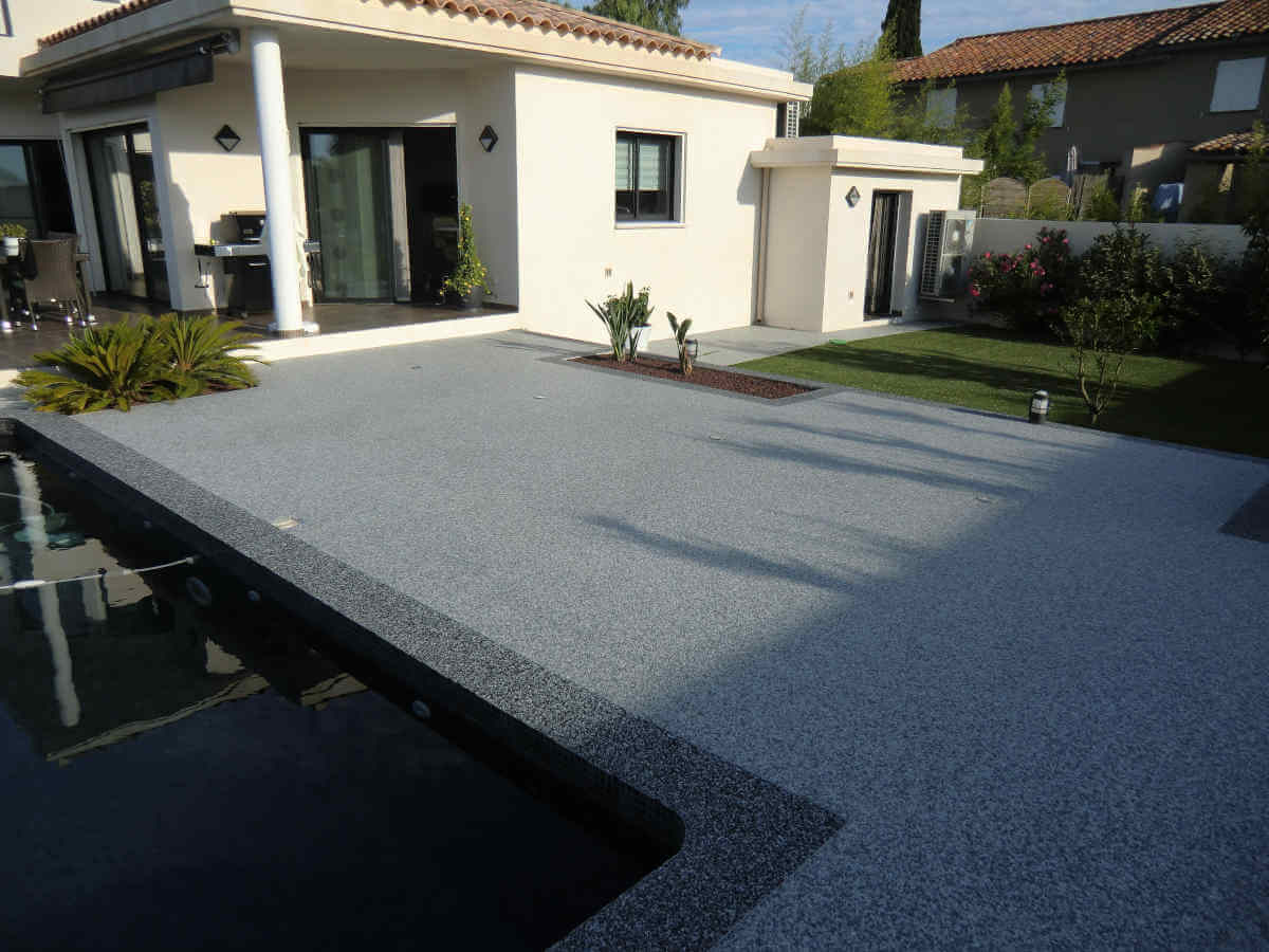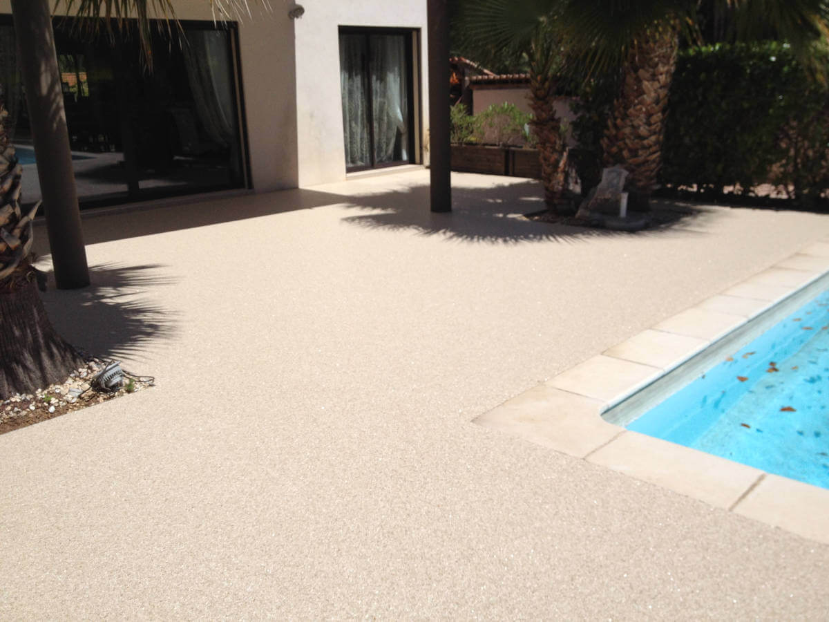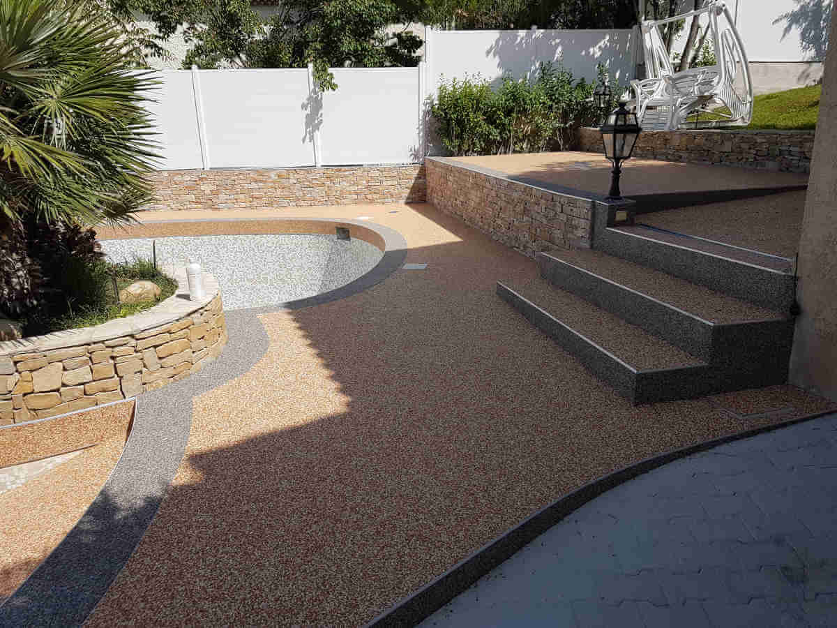 Sols en résine, moquette de pierre pour terrasses extérieures