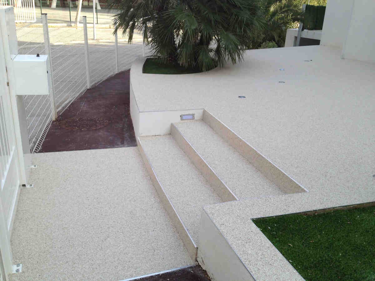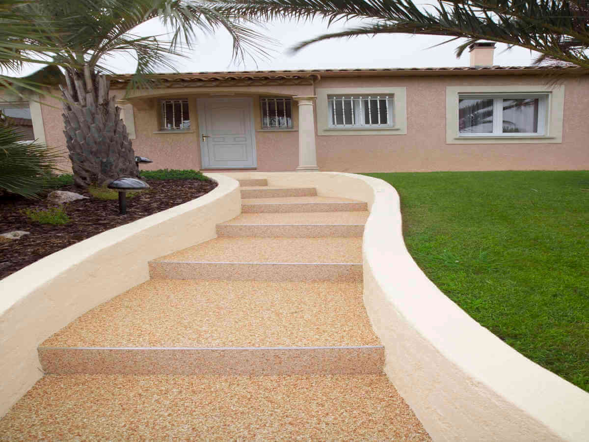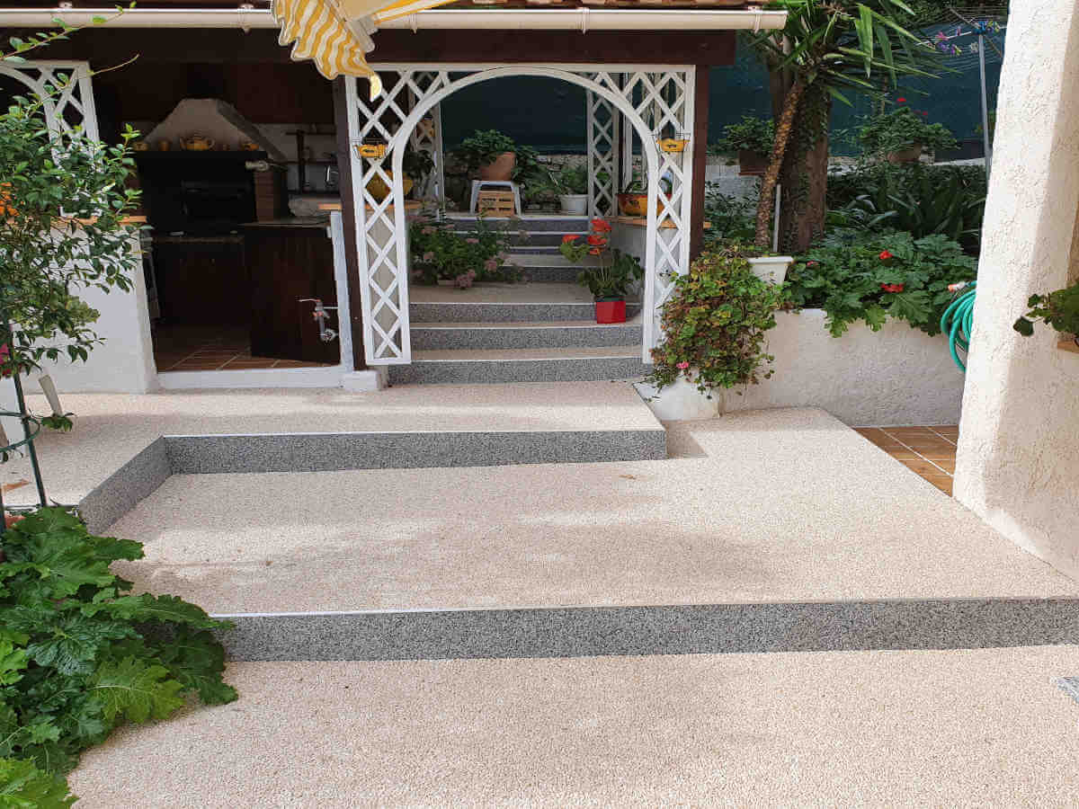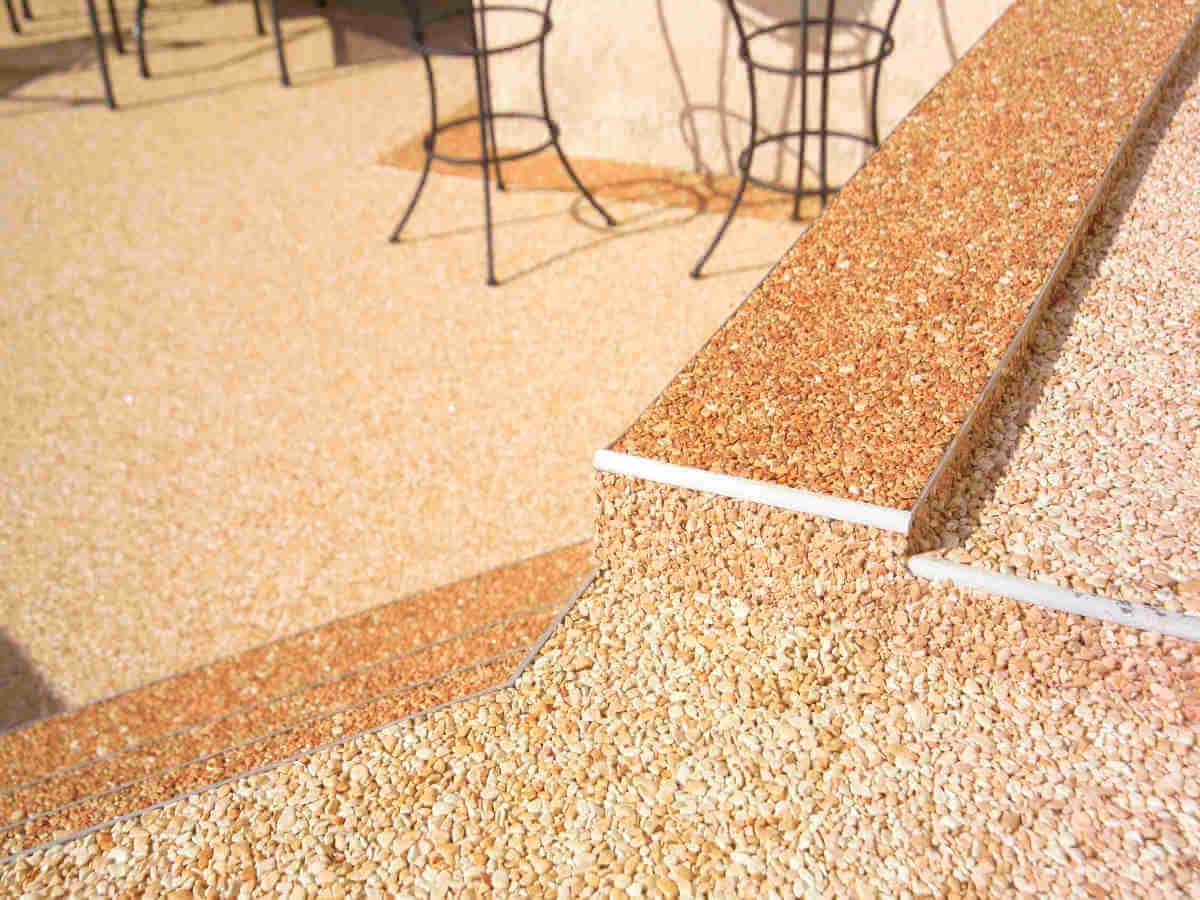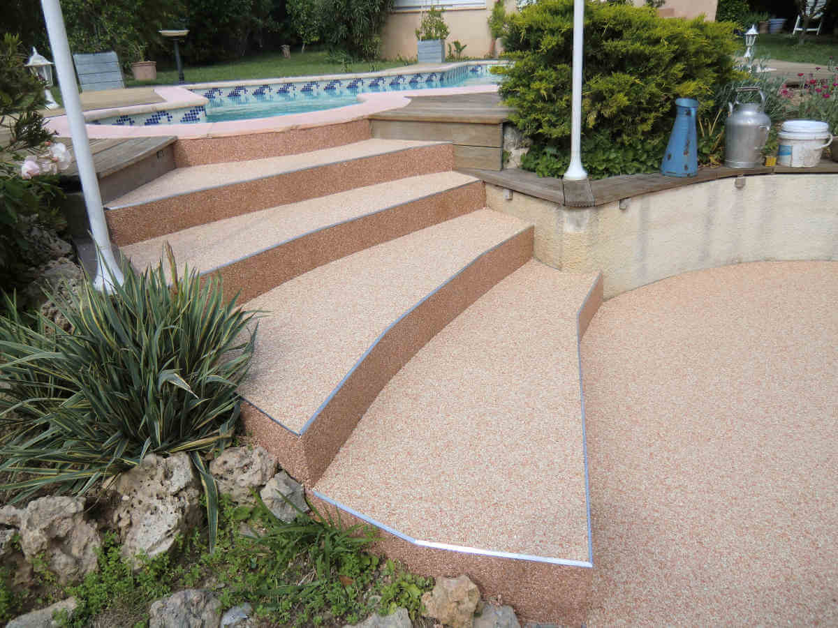 Sols en résine, moquette de pierre pour terrasses extérieures