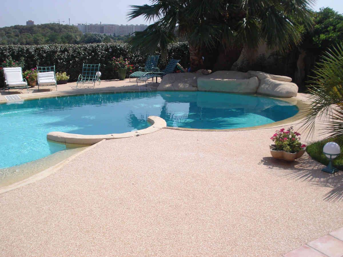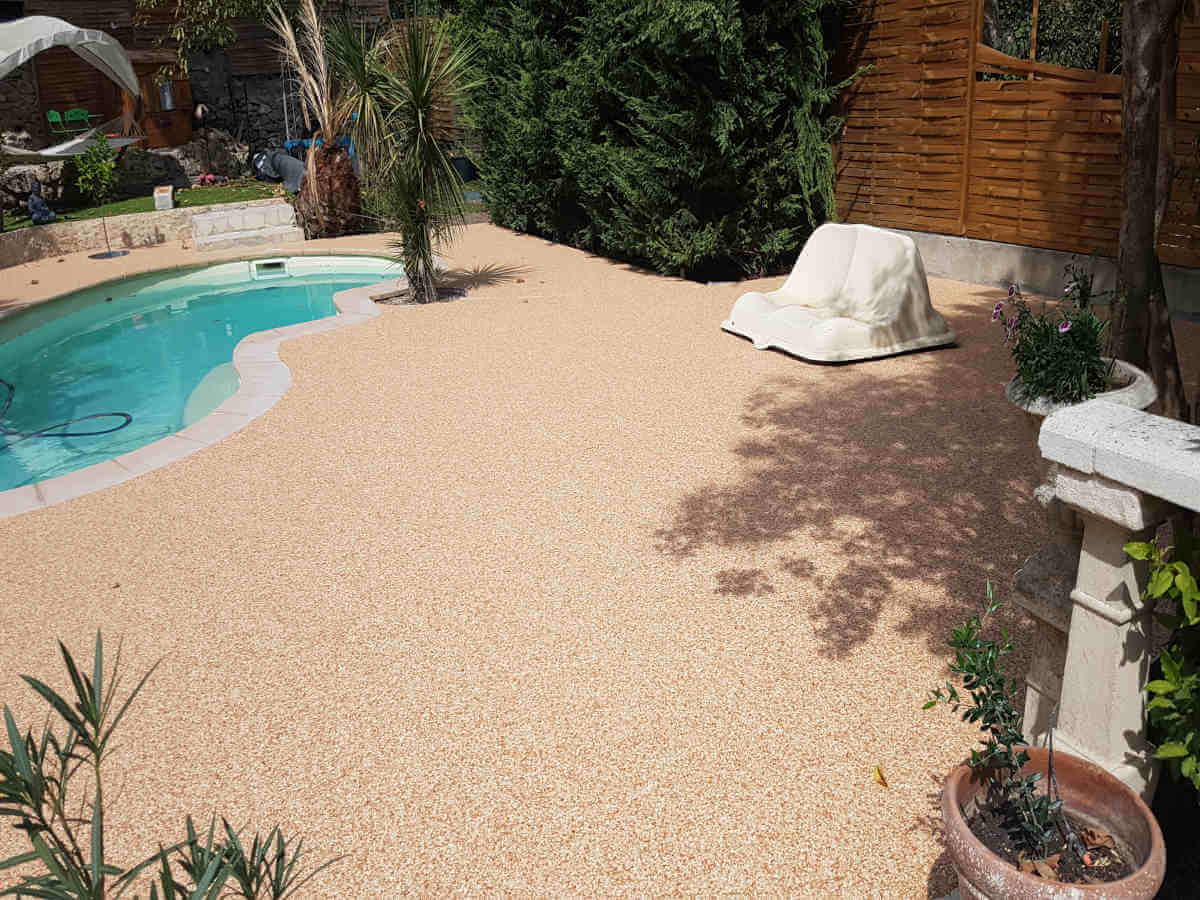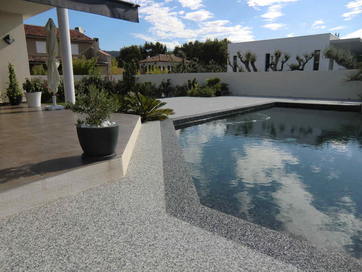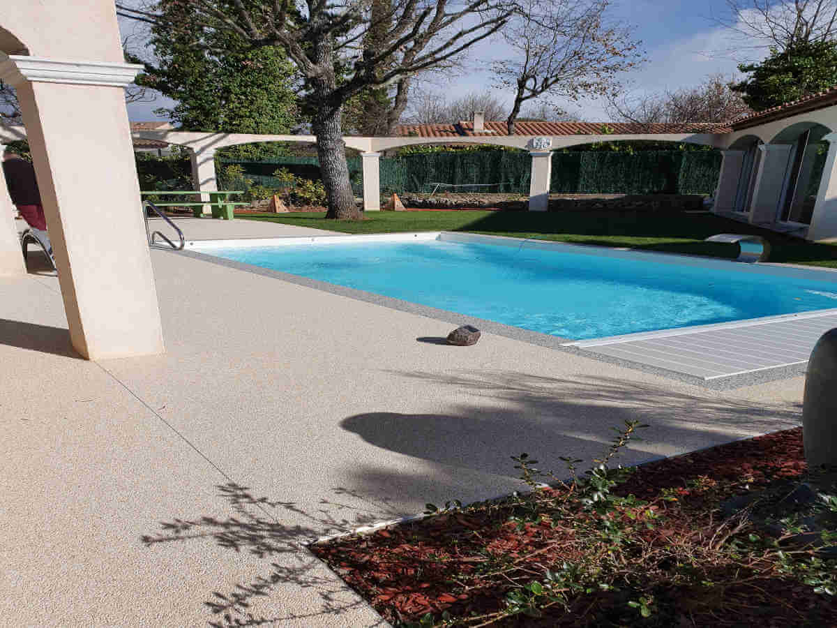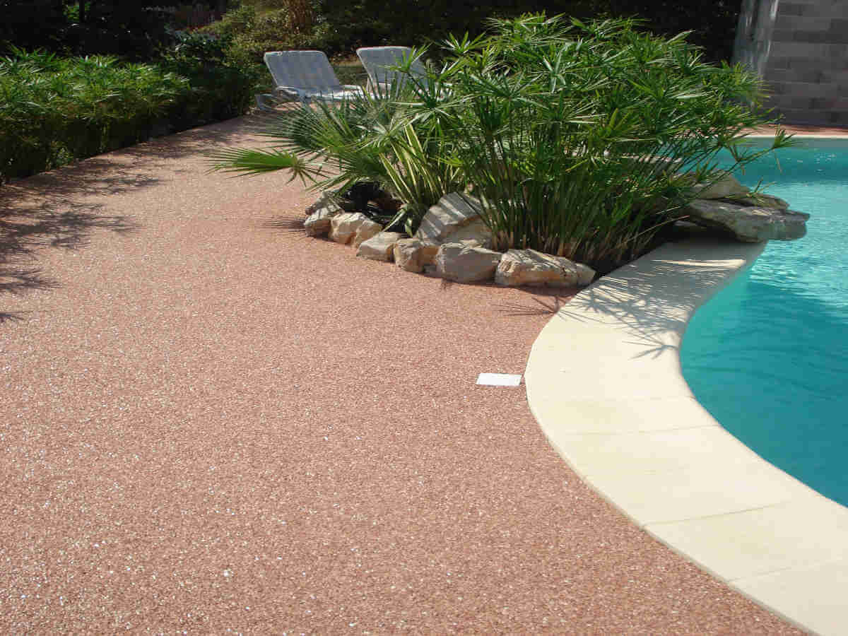 Revêtements résine, moquette de pierre pour plages de piscine