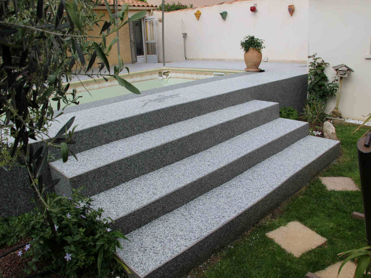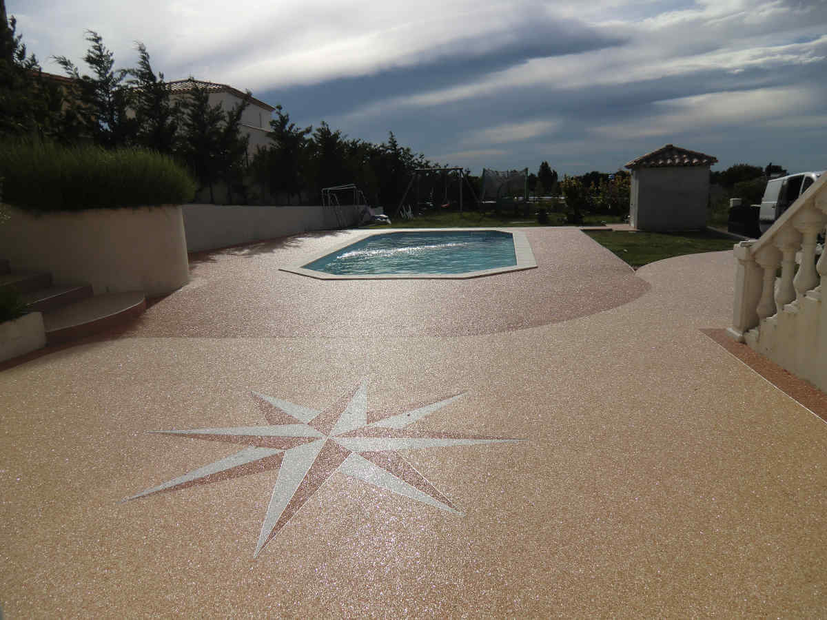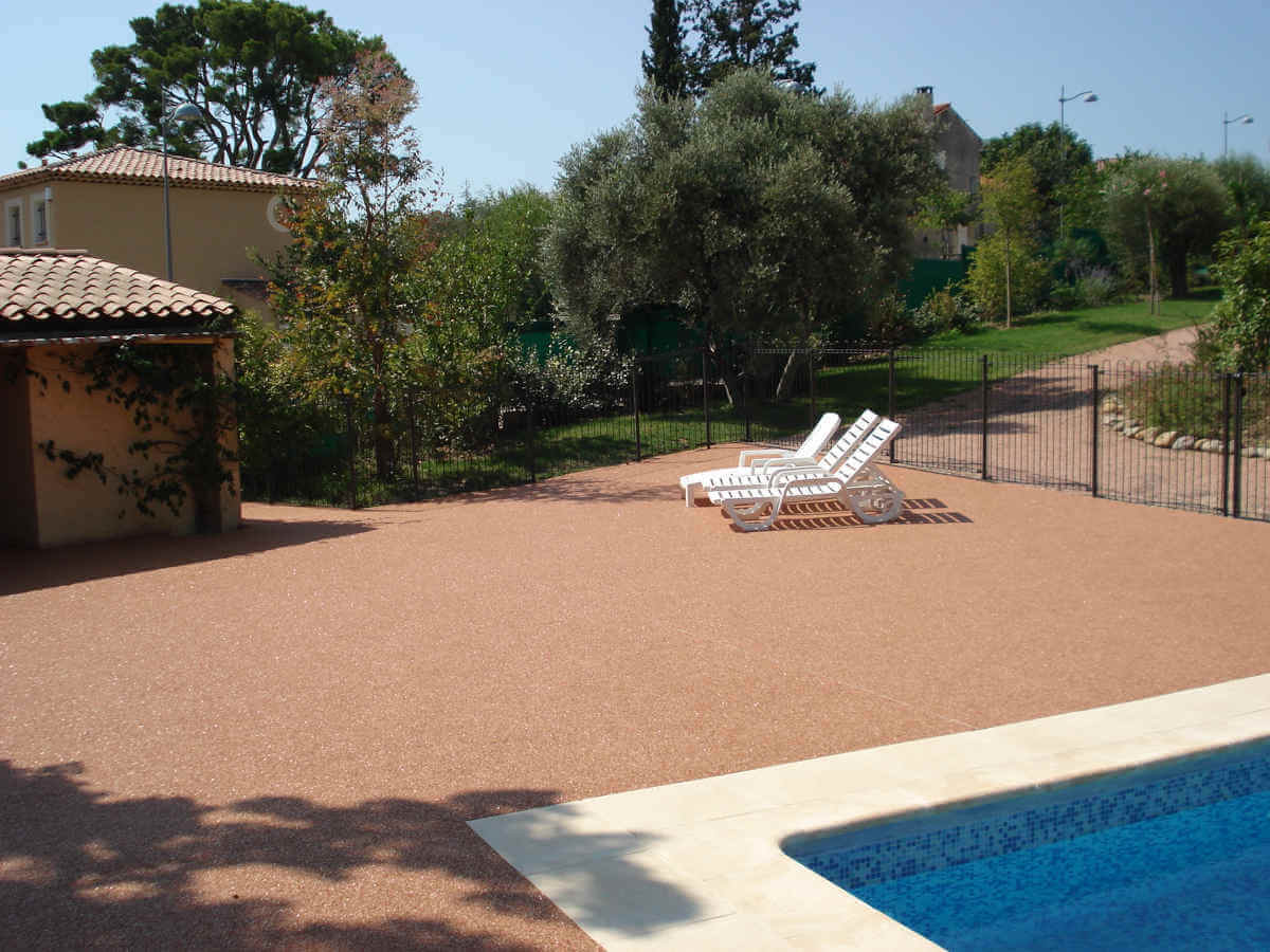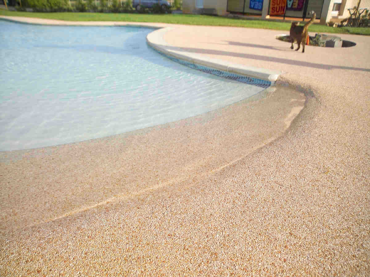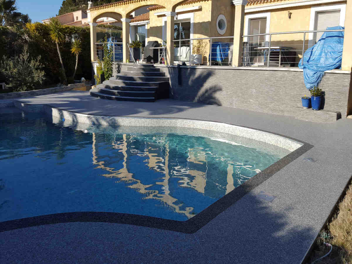 Revêtements résine, moquette de pierre pour plages de piscine