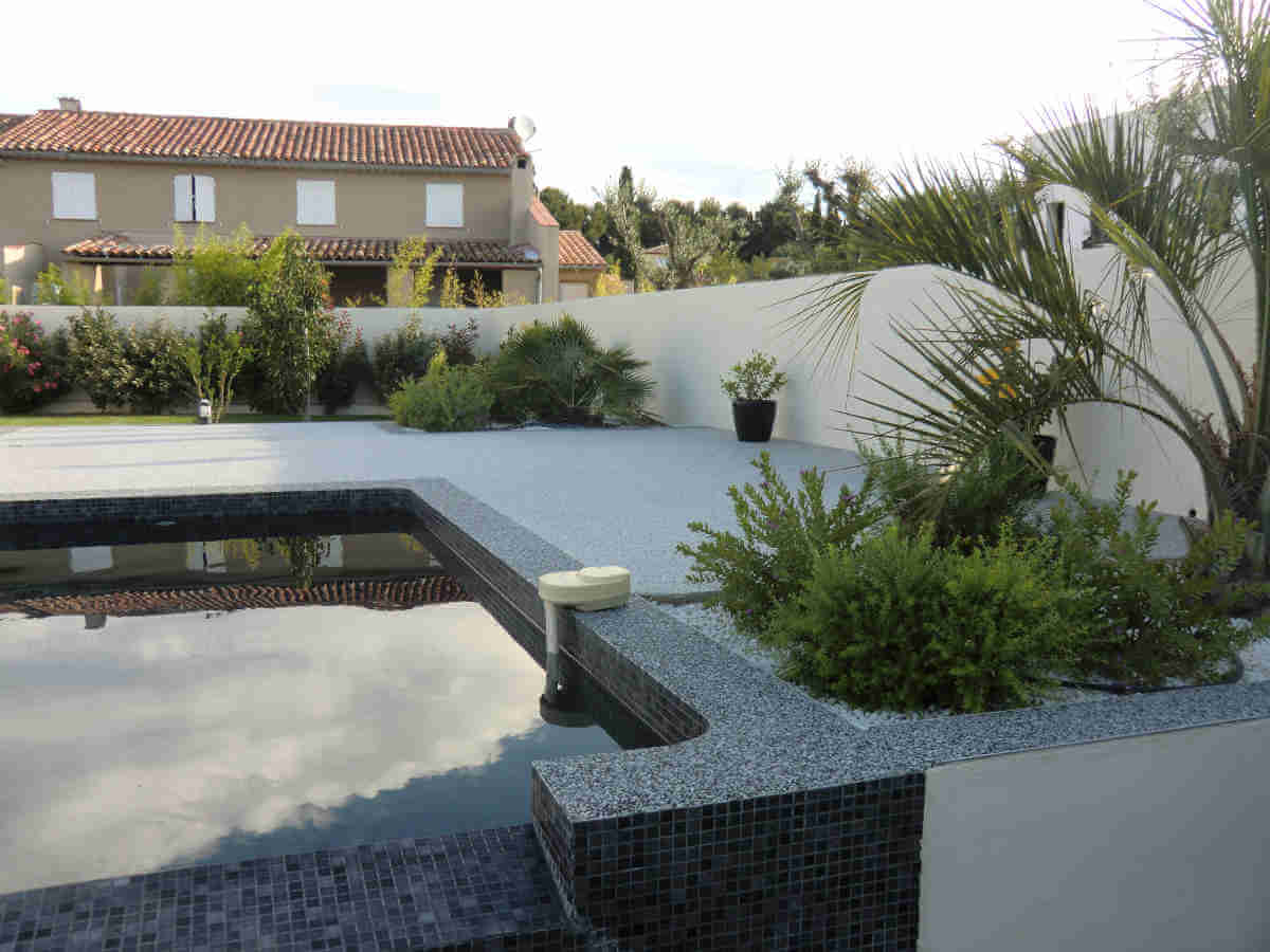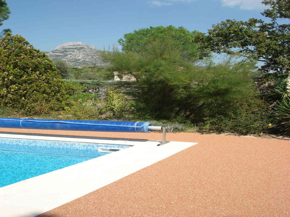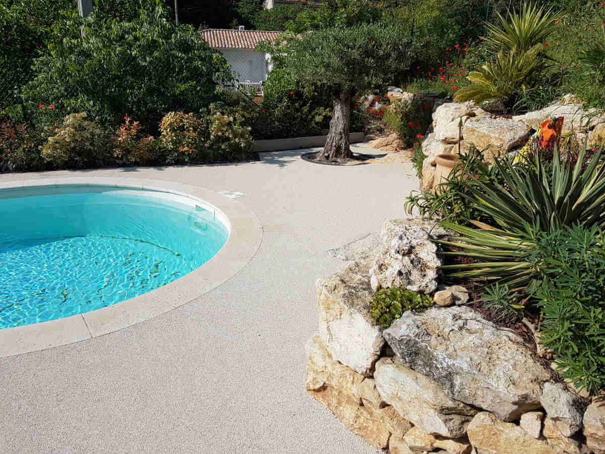 Contour piscine en résine moquette de pierre à Aix en ProvenceContour piscine en résine moquette de pierre à Aix en Provence