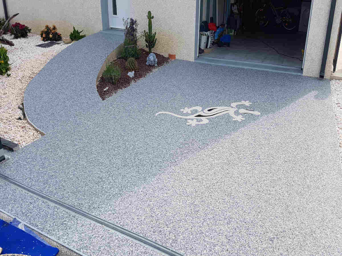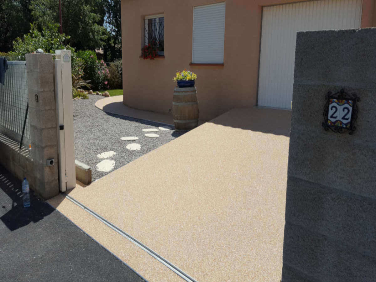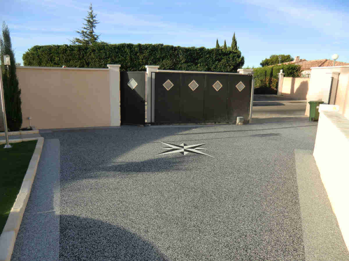 Allée d’entrée et garage en moquette de pierre résine à la CiotatAllée d’entrée et garage en moquette de pierre résine à Salon de Provence