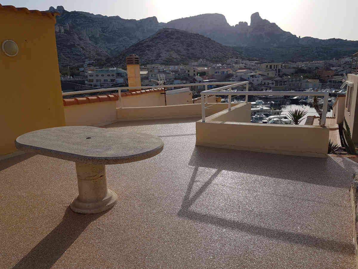 Terrasse en résine moquette de pierre à MarseilleTerrasse en résine moquette de pierre à Marseille