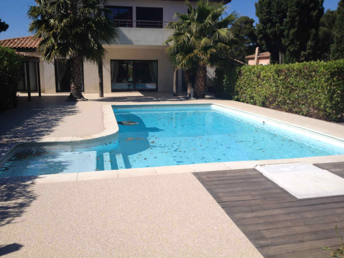 Contour piscine en résine moquette de pierre à BandolContour piscine en résine moquette de pierre à Bormes les Mimosas