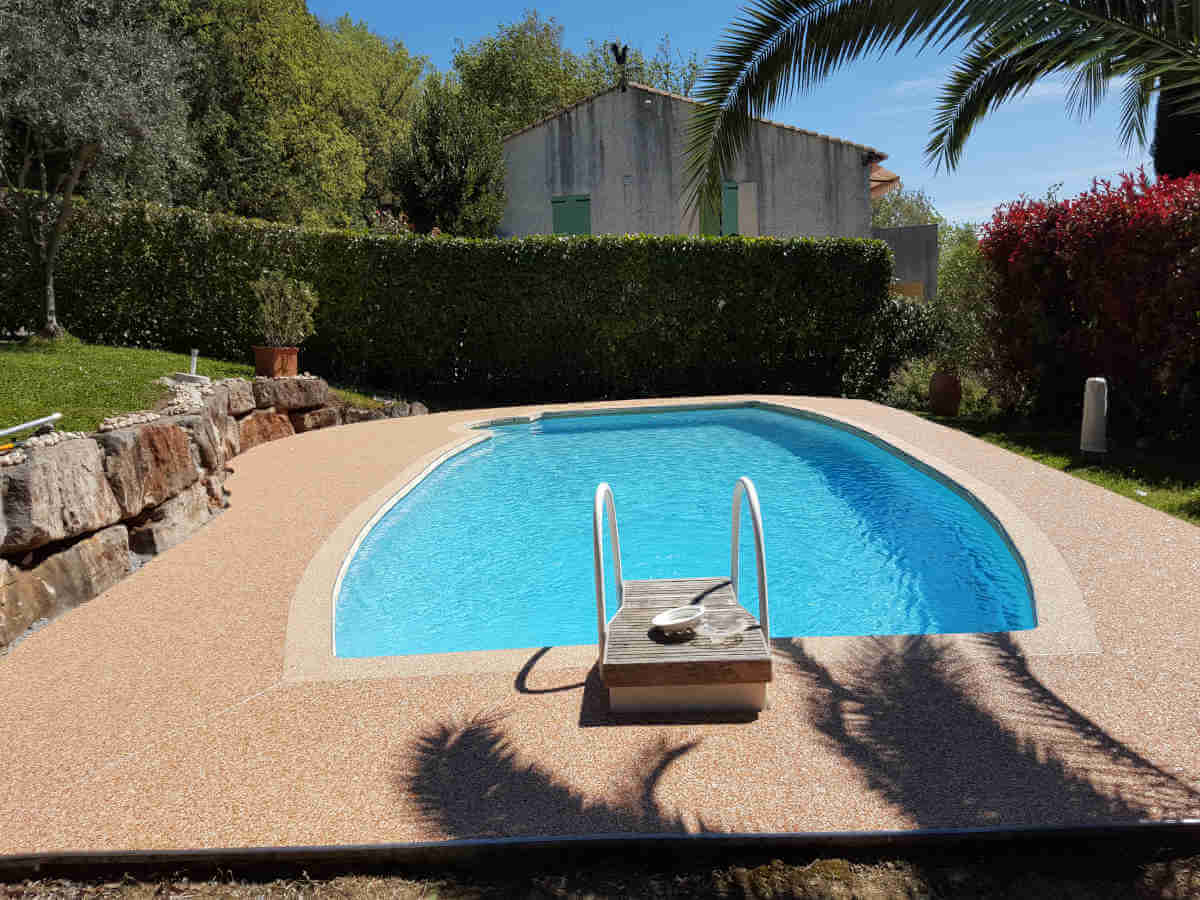La résine drainante crée une zone sécurisée, non glissante et agréable à marcher, idéale pour les abords de bassin.