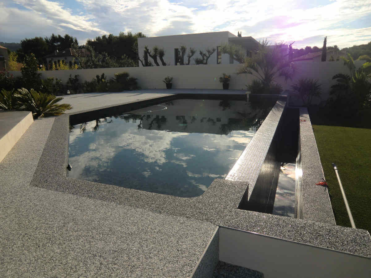 Antidérapant même mouillé, agréable pieds nus, sans aspérité, le revêtement en résine est un choix idéal pour les zones familiales ou les environnements autour des bassins.